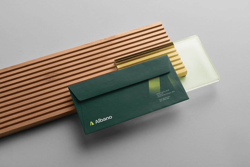 Albano é um nome de origem latina, derivado do nome do povo Albani, que habitava as regiões dos Alpes nos primórdios da história romana. Seu significado remonta a "o branco" ou "o luminoso". O símbolo desenvolvido busca transmitir a força e a história por trás do nome de maneira sólida, utilizando a letra inicial associada a um ícone de montanha, em referência aos Alpes. Seus cantos são angulosos e não há o uso de formas arredondadas, reforçando a ideia de técnica, robustez e firmeza.